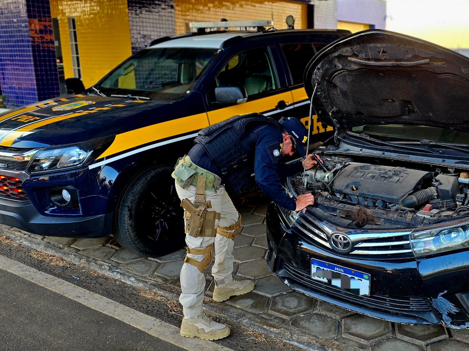 Ao consultar os sistemas informatizados da PRF, os agentes verificaram que o carro estava com os elementos identificadores adulterados e foi possível identificar o veículo original, o qual possuía registro de roubo/furto feito em Recife (PE), no dia 22 de fevereiro de 2025.