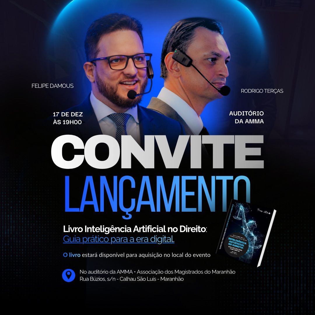 Temos uma dica de evento imperdível para quem se interessa pela intersecção entre Direito e Tecnologia: o lançamento do livro “Inteligência Artificial no Direito: Guia Prático para a Era Digital”!